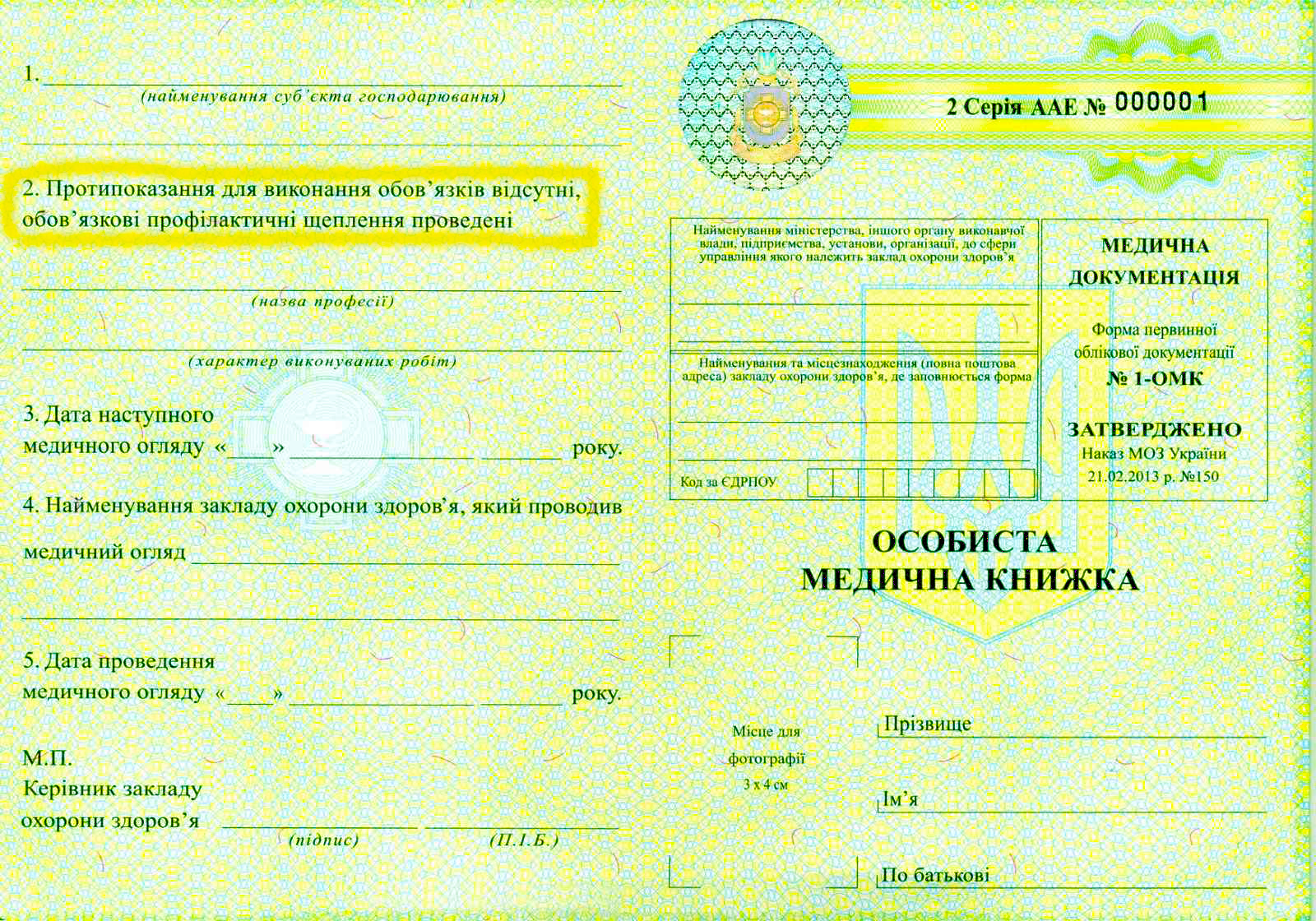 До уваги! НОВА форма: Особиста медична книжка 1-ОМК